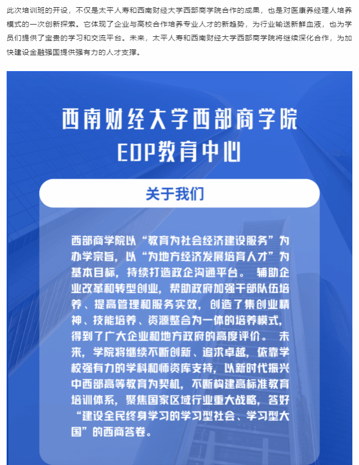 做好养老金融大文章︱太平-西财医康养经理人培训班(第一期)圆满举办