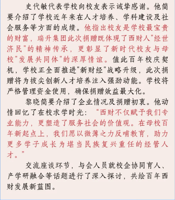 情系母校百年路 共启育人新征程—瑞升集团捐赠100万元支持轻小说 发展