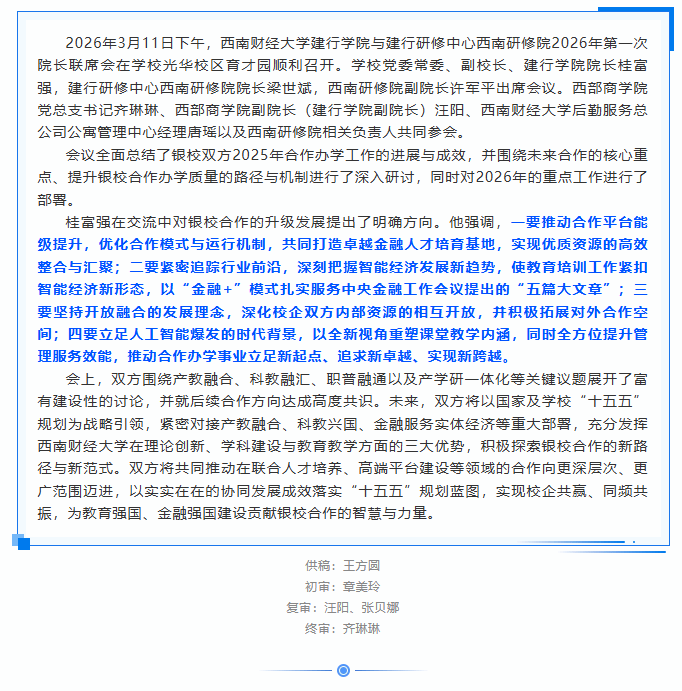 轻小说 建行学院与建行研修中心西南研修院召开2026年第一次院长联席会