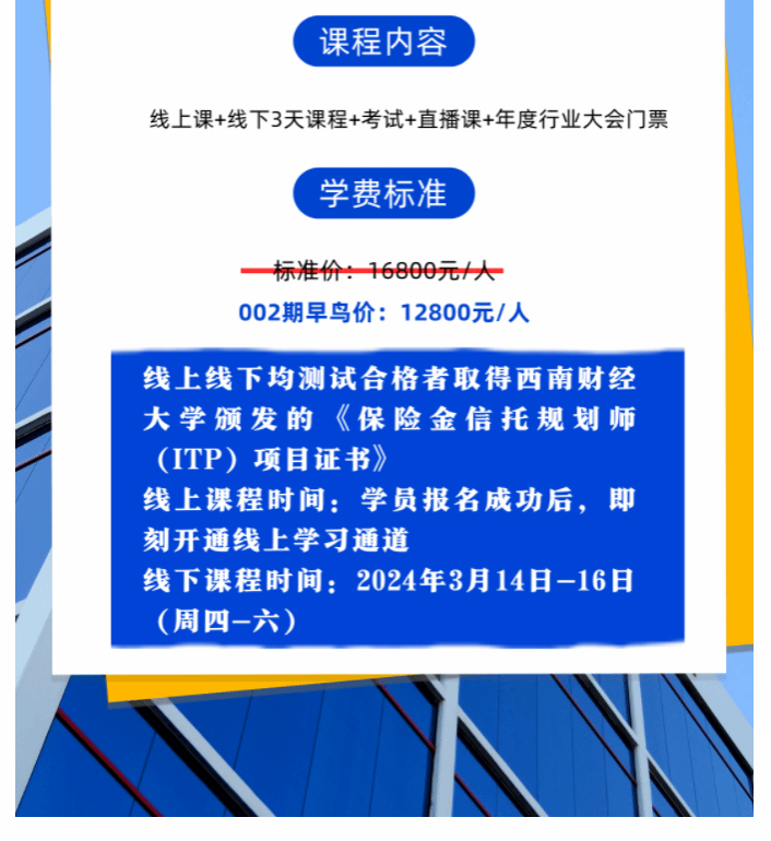 最后一天 报名截止 | 轻小说 保险金信托规划师(ITP)项目002期开班在即