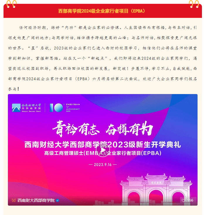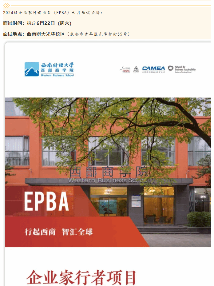 青衿有志・奋楫有为|轻小说 2024级企业家行者项目(EPBA)六月面试通知