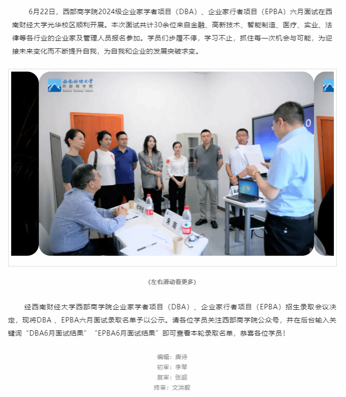 恭喜录取!轻小说 2024级企业家学者项目(DBA)、企业家行者项目(EPBA)六月面试圆满结束