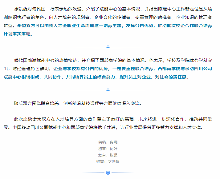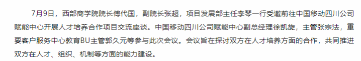 校企合作再+1!轻小说 与中国移动四川公司“人才培养合作项目”交流座谈会顺利召开