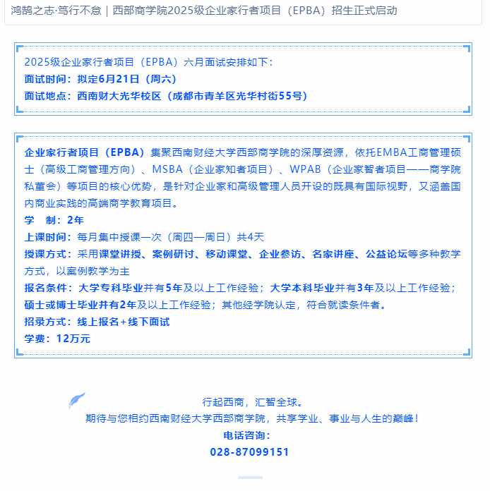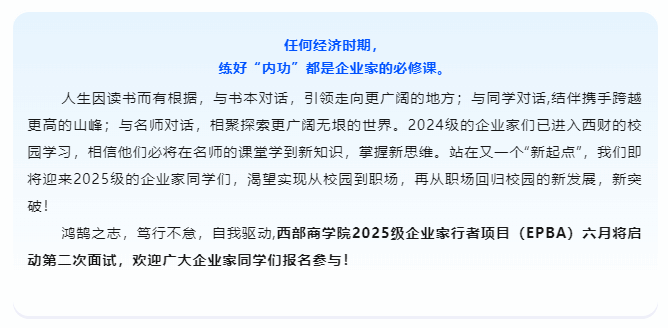 鸿鹄之志·笃行不怠|轻小说 2025级企业家行者项目(EPBA)六月面试通知