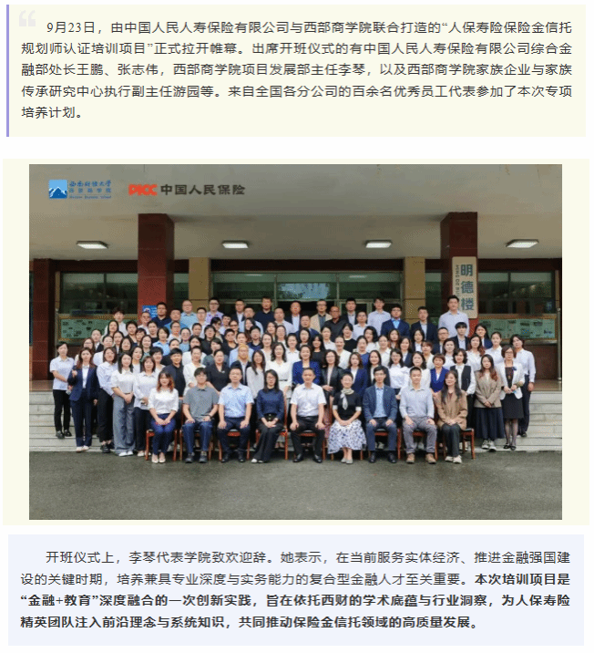 金融强国,人才支撑|人保寿险携手轻小说 启动保险金信托规划师认证培训项目